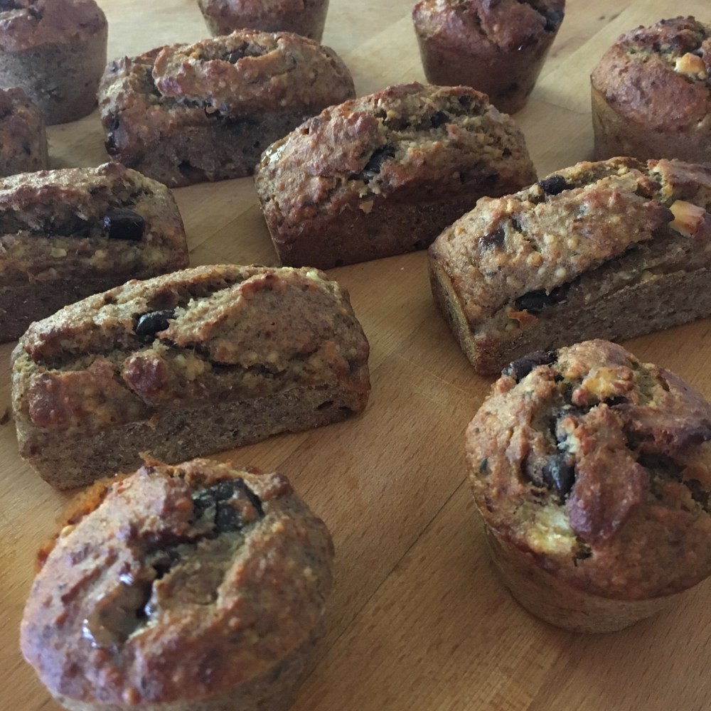 On met dans des moules à muffins ou mini cake et on enfourne à 180 degrés pour 20 mn. (Dans un four préalablement préchauffé bien sûr)