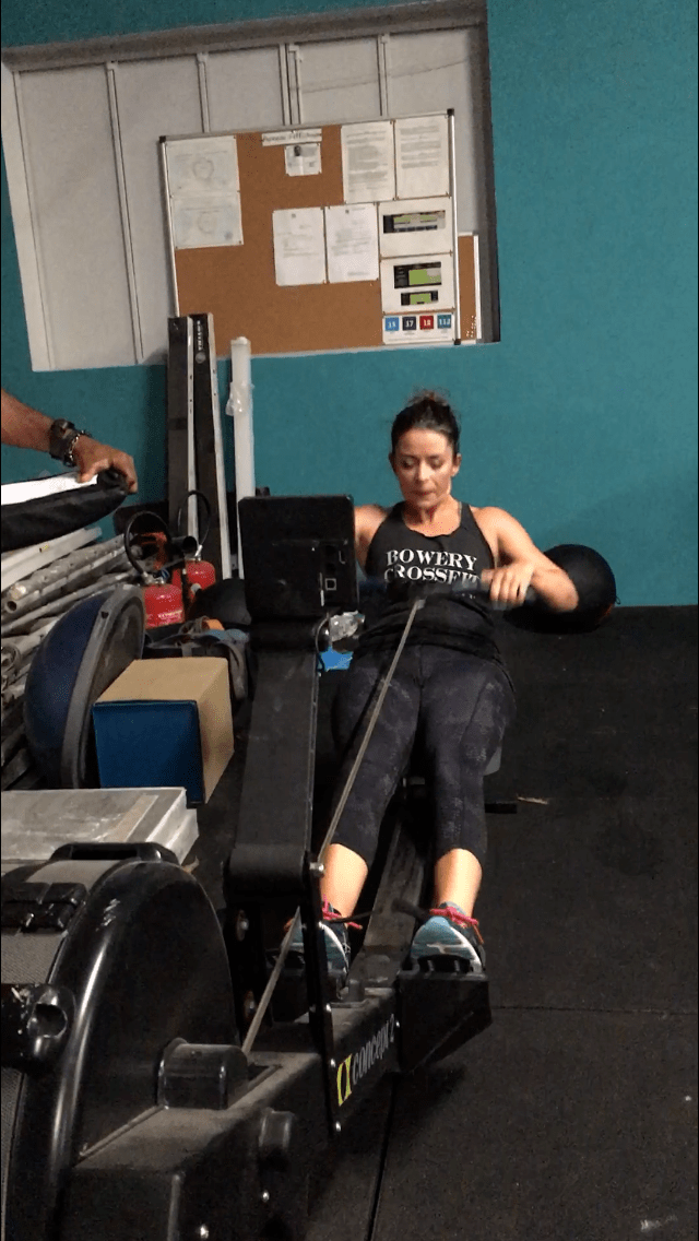 C’était donc parti pour le 19.1 en RX ! Mon Wall Ball de 6kg devant mes pieds, les chausses pieds de mon rameur ajustés, ma bouteille d’eau à proximité et Willem, mon juge ! Le décompte des 10 secondes défile et hop, c’est parti pour 15 mn bien cardio…
