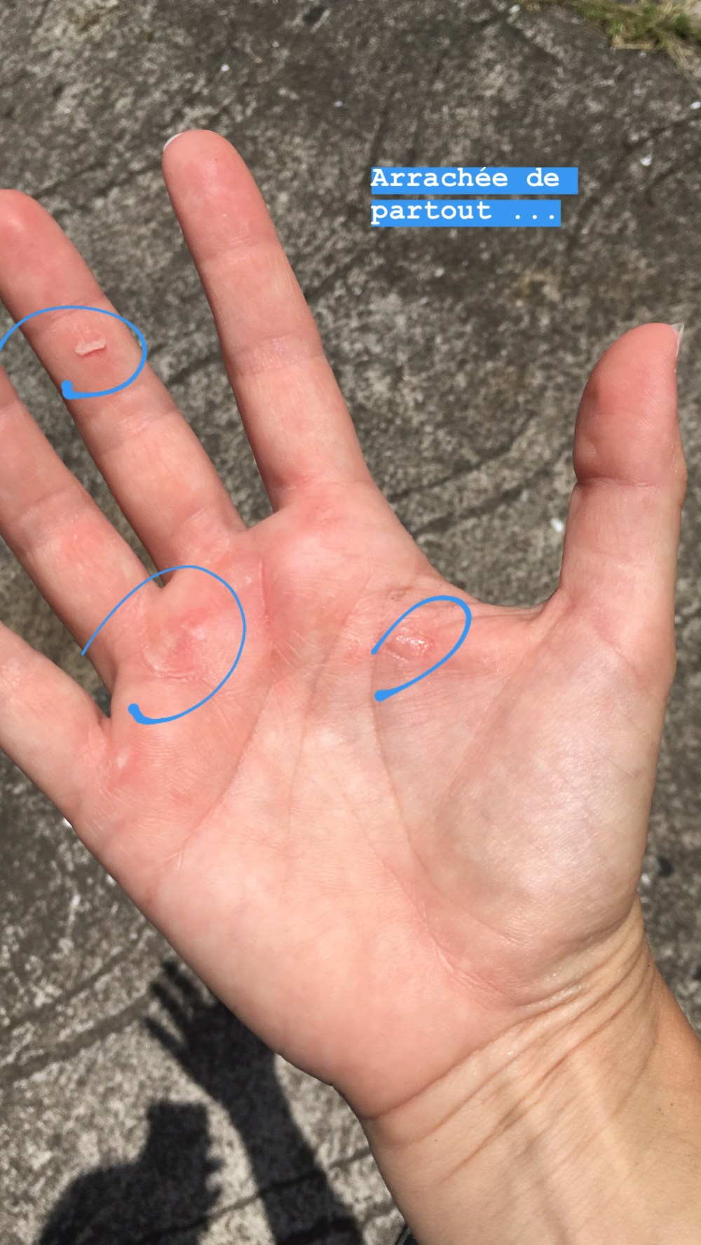 Je n’ai pas lâché, jamais, même quand ma main droite, à force de faire un peu n’importe quoi, a commencé à s’ouvrir. Oui j’avais enlevé mes maniques de gym qui, je trouvais, me faisaient glisser mais malgré cela, les maniques WodnDone ont tenu en place mais même en tenant, je me suis ouverte à 3 endroits et les 5 dernières minutes, le simple contact de la barre dans mon grip suffisait à me faire louper tout espoir d’en passer une de plus.
