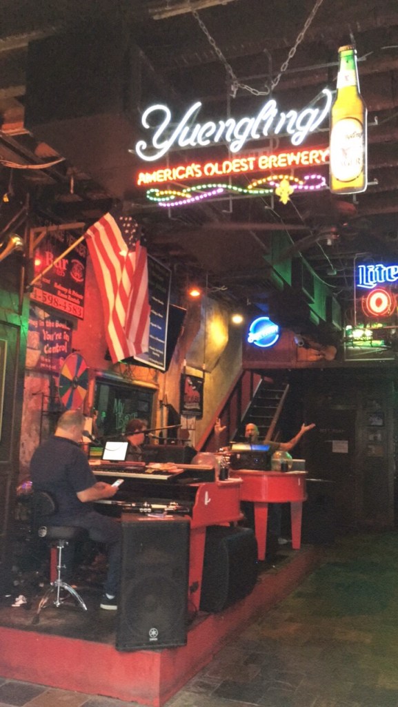 On repart 45 mn plus tard, les jambes légères, en pleine forme pour de nouveaux bars tel que le Bourbon Heat ou le Café Beignet (pas pour les célèbres beignets qu’on ne goutera pas pendant notre séjour faut d’aimer les beignets gras et sucrés … mais pour un petit concert de jazz en plein air).